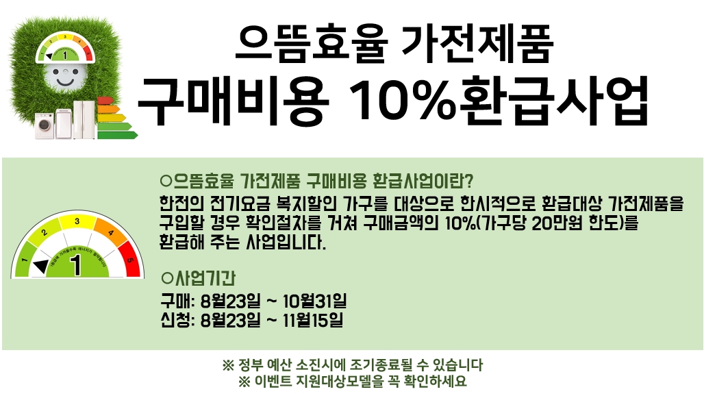 앞으로도 유익한 정보로 찾아뵙겠습니다. 고효율 1등급 가전 환급 사업을 통해 스마트한 소비 생활을 실천해보세요!