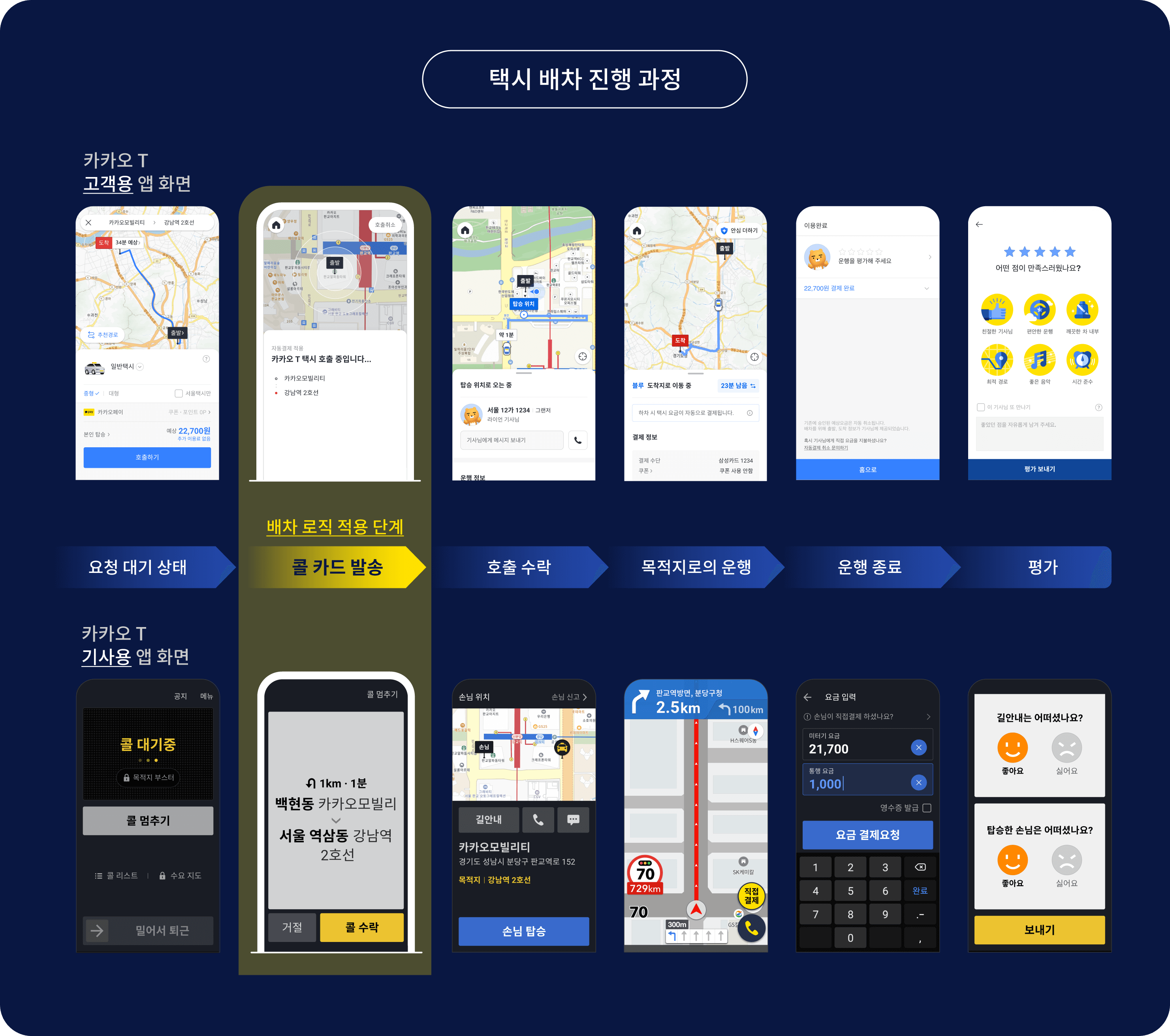 택시를 호출하면 인근의 택시 기사에게 배차 요청이 전달되고, 기사가 수락하면 실시간으로 택시의 위치와 도착 예상 시간을 확인할 수 있습니다. 카카오 T 택시의 스마트 배차 시스템은 AI 기술을 활용하여 가장 빠르게 도착할 수 있는 택시를 매칭해줍니다.